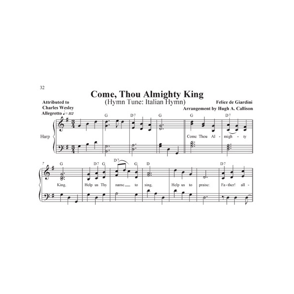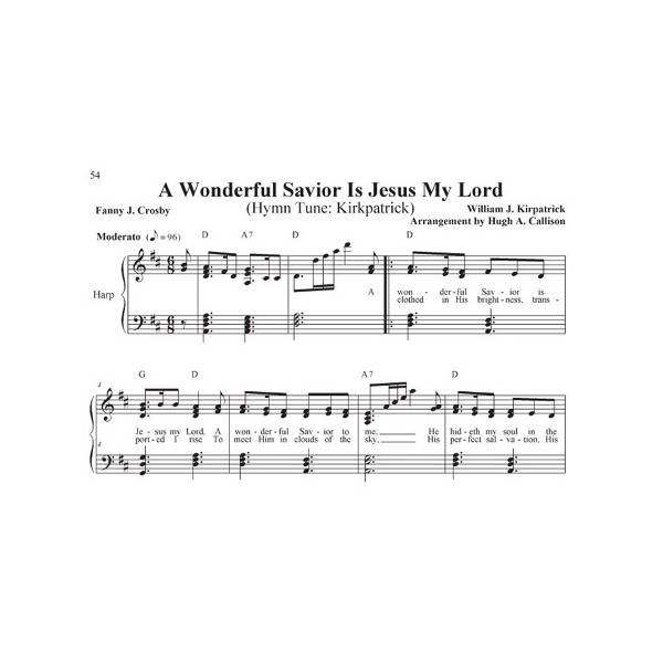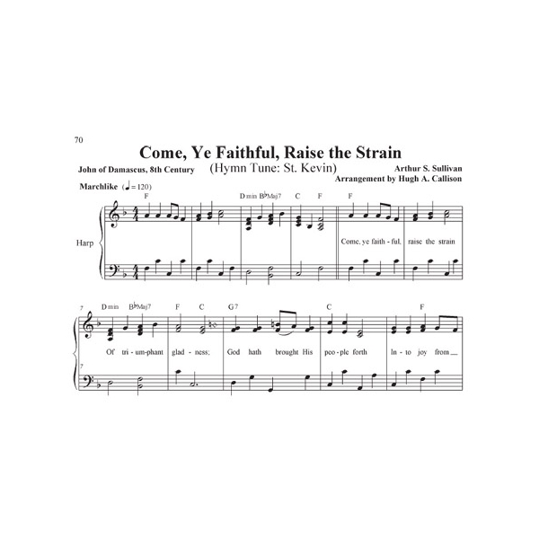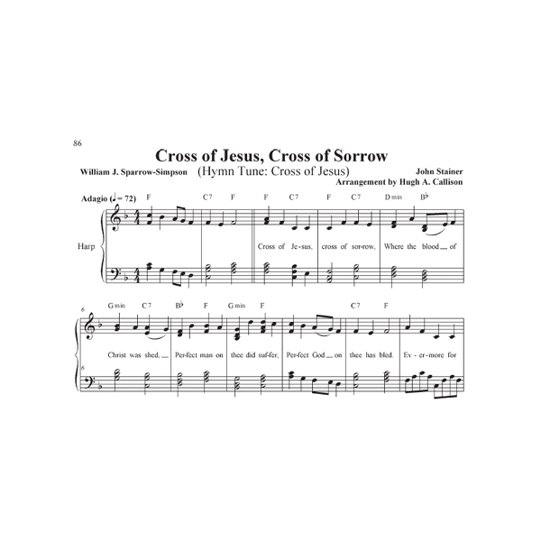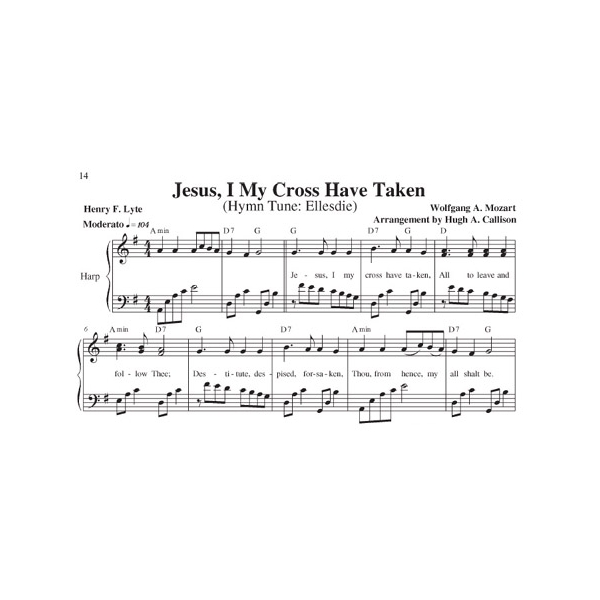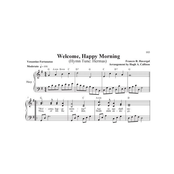 This valuable collection of hymns is the fifth in a series of five! Volume five includes songs for Lent, Easter, and Pentecost. You will find many wonderful titles that have not previously been arranged for harp, from well-known favorites that you grew up with, to songs that are lesser-known yet equally important. These tunes have the added benefit of being arranged in keys that are accessible to most vocal ranges, which is especially helpful when playing along with congregational singing. Mr. Callison came to the harp as an adult after retiring from 40 years as a music educator. His arrangements are interesting and have lovely harmonies. All have been edited for harpability and are playable on a harp which goes to the G which is one and ½ octaves below middle C. Lever changes are indicated with diamond-shaped notes. Some tunes have no lever changes, some have a lot. The left hand in a few of the tunes is quite active. 75 tunes, 103 pages.
