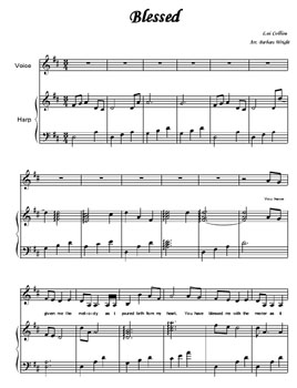 A beautiful song written by Lui Collins, a well known New England folk singer. The words and melody are uplifting and appropriate for performance in all arenas – for enjoyment, for yourself or for an audience. It is said of Collins that she blends her original songs, dynamic readings of her poetry, and traditional banjo tunes, in an intimate conversation with her audience. This is a wonderful example of her work. The harp part is by Barbara Wright. It is simple, and can be played on a harp of 26 strings. In the key of D, the piece has a very basic accompaniment. Nondenominational, essentially the words speak of being blessed and grateful for life. You will enjoy this one! Full score included with a pull-out voice part.