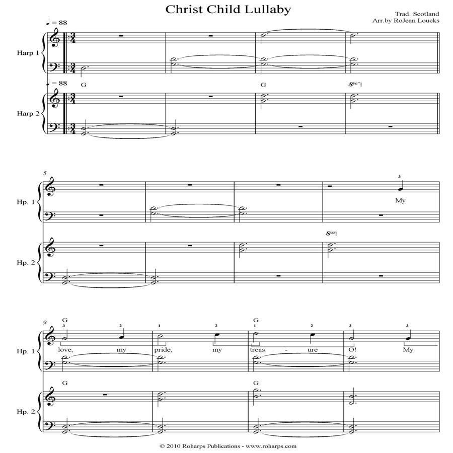 ALL HARPS DUO, LATE BEGINNER. A peaceful, ringing duo of a Scottish cradle song arranged by RoJean Loucks for two lever or pedal harps. Please choose either Paper or Download version.