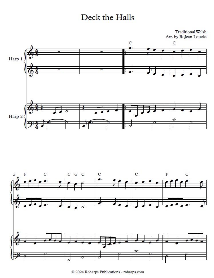 ALL HARPS DUO, VARIOUS LEVELS. A crowd-favorite Christmas carol arranged by RoJean Loucks as multi-level duo for two lever or pedal harps. Available as a PDF download only.