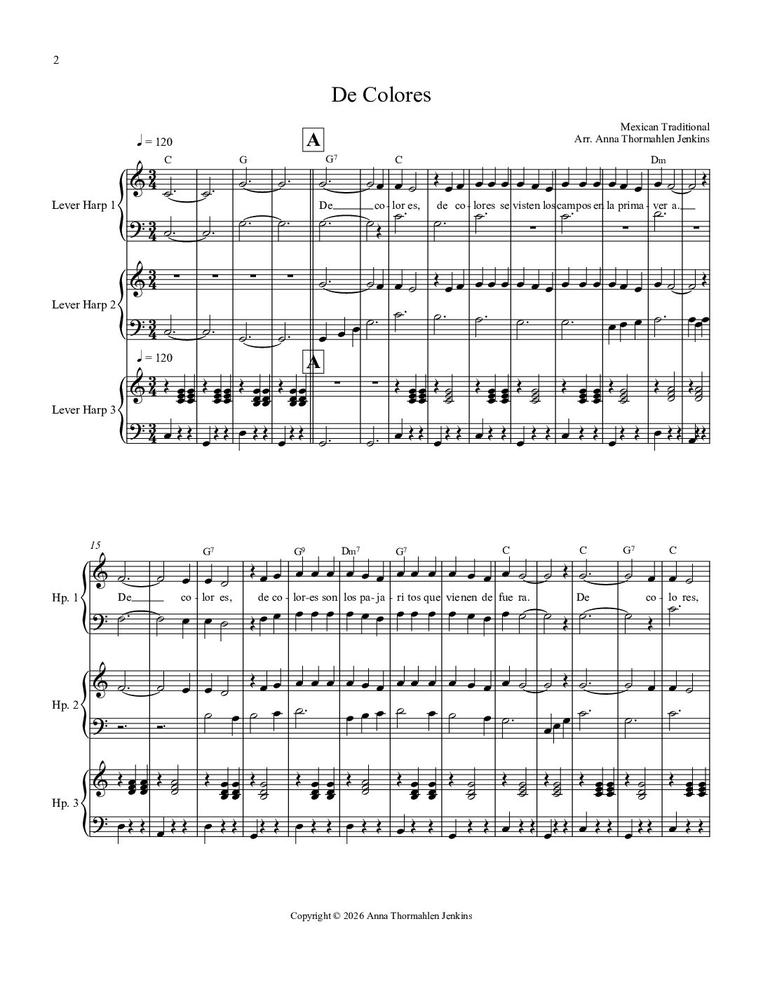 Arrangements of songs from around the world for harp trios by Anna Thormahlen Jenkins.