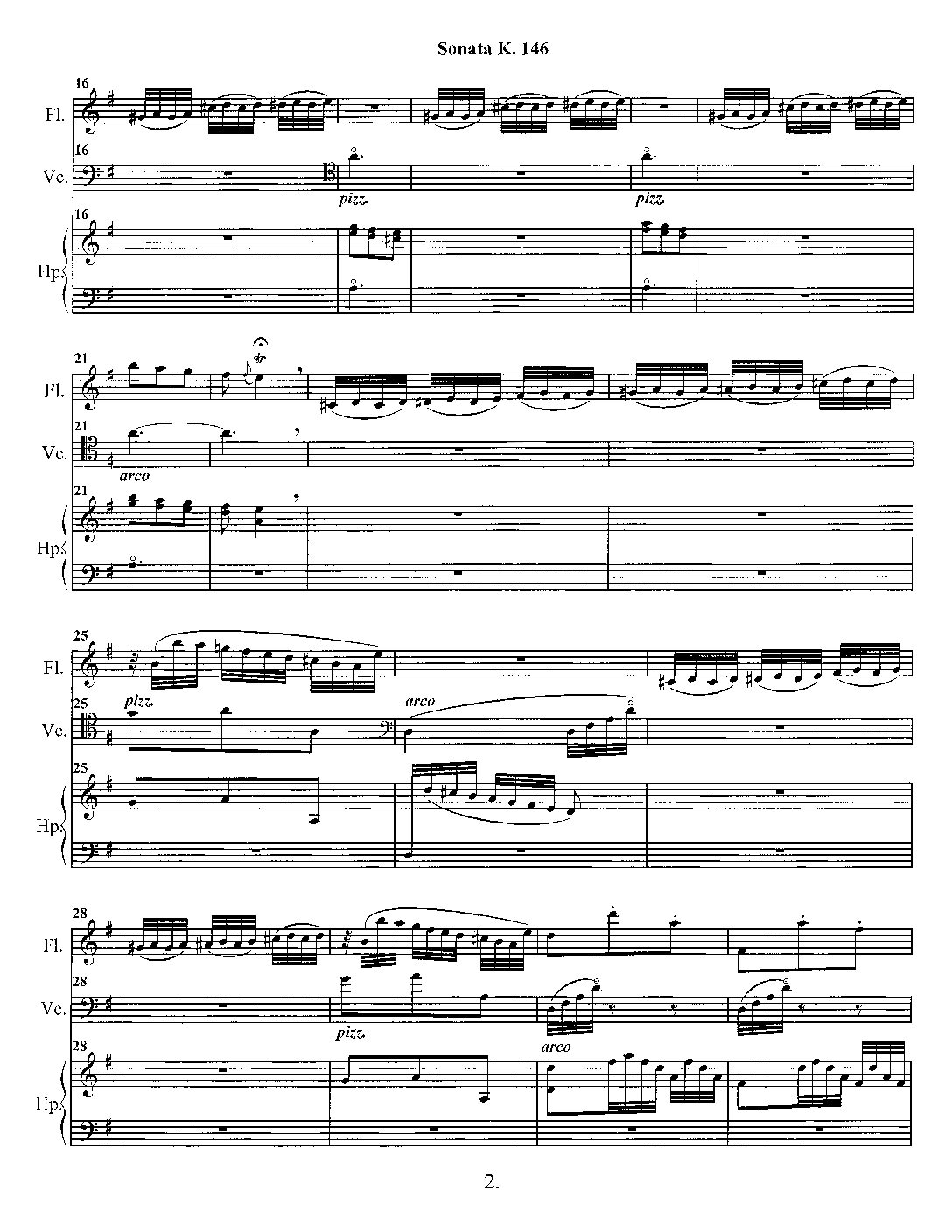 Sonata K 146 is an energetic and joyful piece that is artfully arranged and a bright and playful interplay between the instruments.