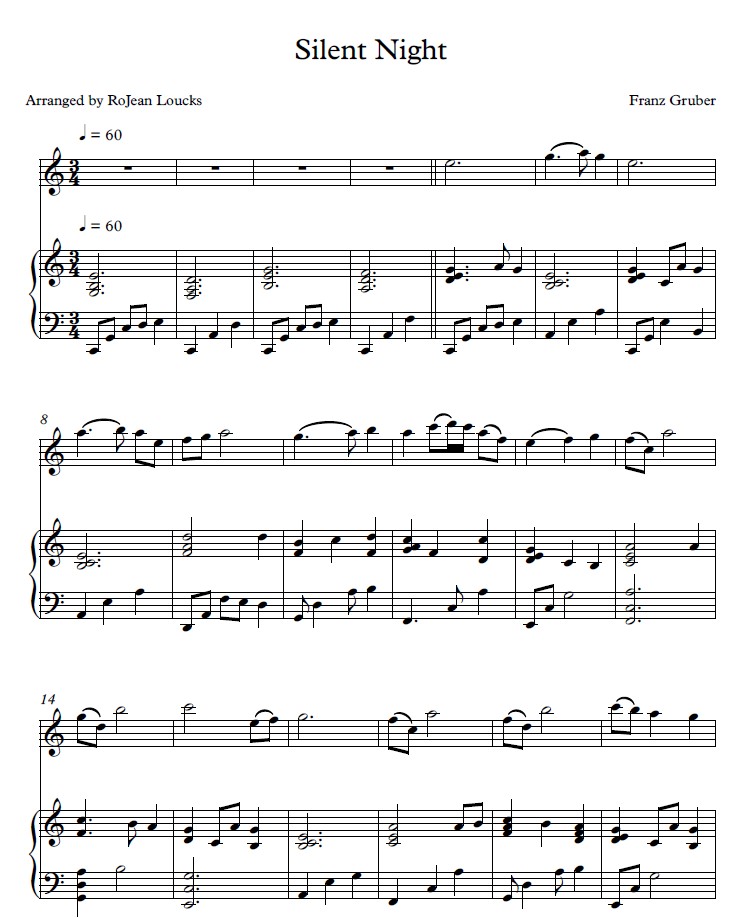 ALL HARPS + FLUTE, INTERMEDIATE. The favorite German Christmas carol freshly arranged by RoJean Loucks for lever or pedal harp and flute. Available as a PDF download only.