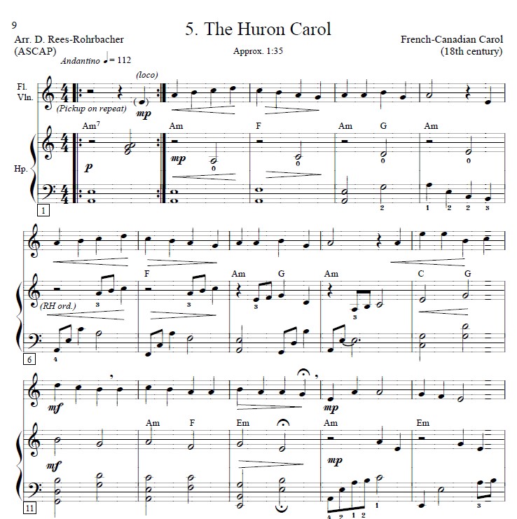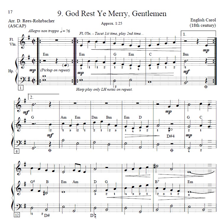 Included are a harp score and a separate instrument part.  ALL HARPS + FLUTE/VIOLIN, INTERMEDIATE.