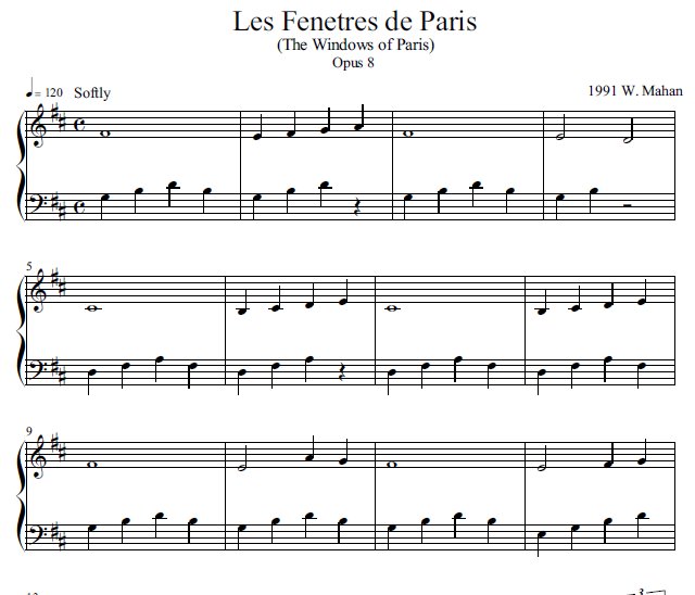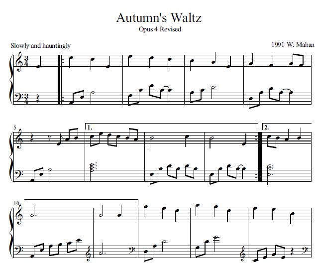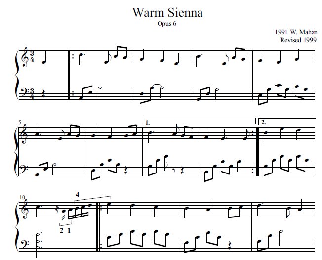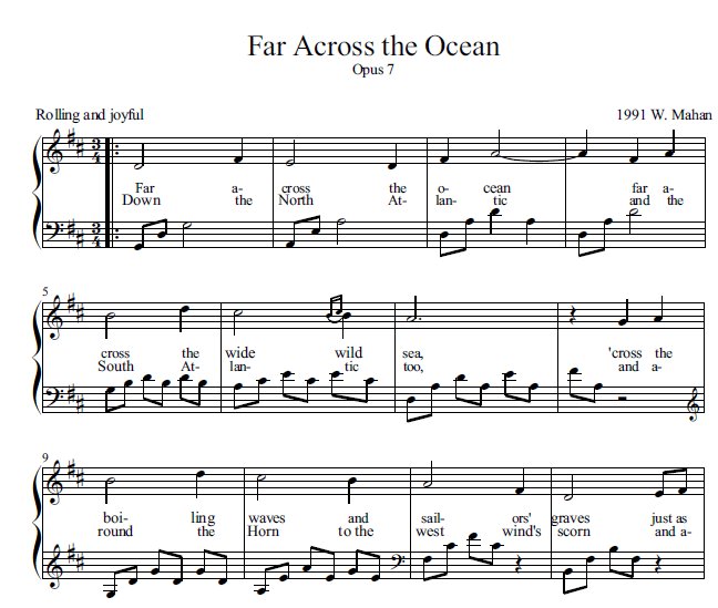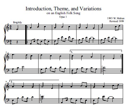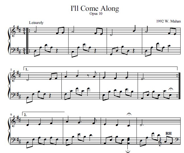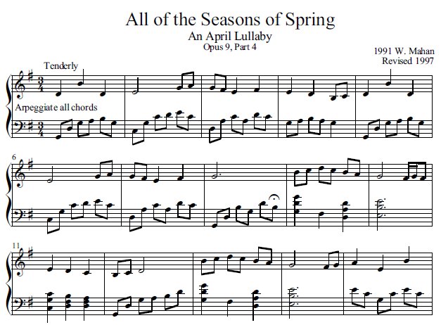 The Frog and the Leprechaun (with lyrics), Introduction, Theme and Variations on an English Folk Song, Canarios by G. Sanz, Song in G, Canyon, Warm Sienna, Autumn’s Waltz, Far Across the Ocean (with lyrics), Les Fenetres de Paris, An April Lullaby, I’ll Come Along, The Green Hills of Clare (with lyrics), My Home Town (with lyrics).